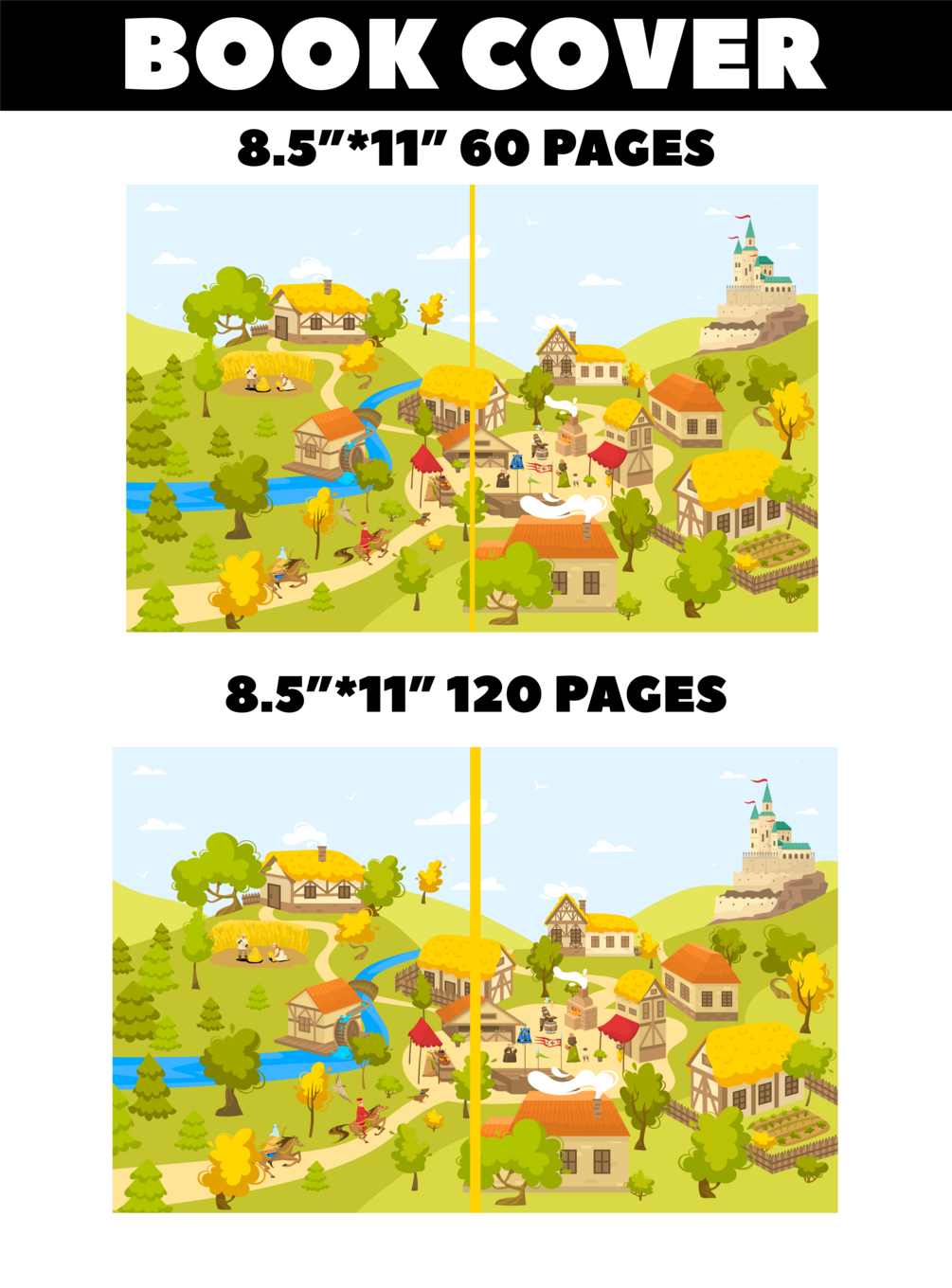Book Cover Size: 8.5" * 11" for 120 and 60 pages White