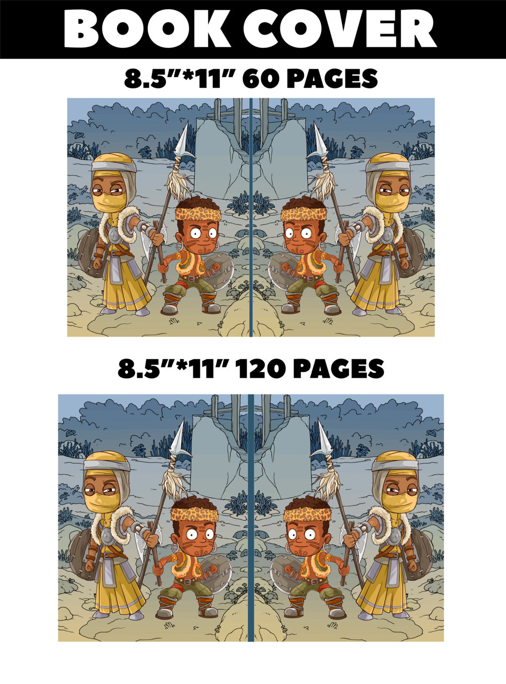 Book Cover Size: 8.5" * 11" for 120 and 60 pages White